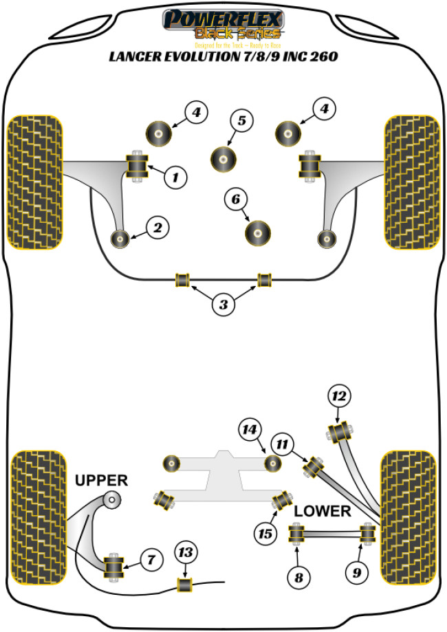 Fits EVO 6, 7, 8 & 9 only. For Evo 4 & 5 use PFR44-113BLK.