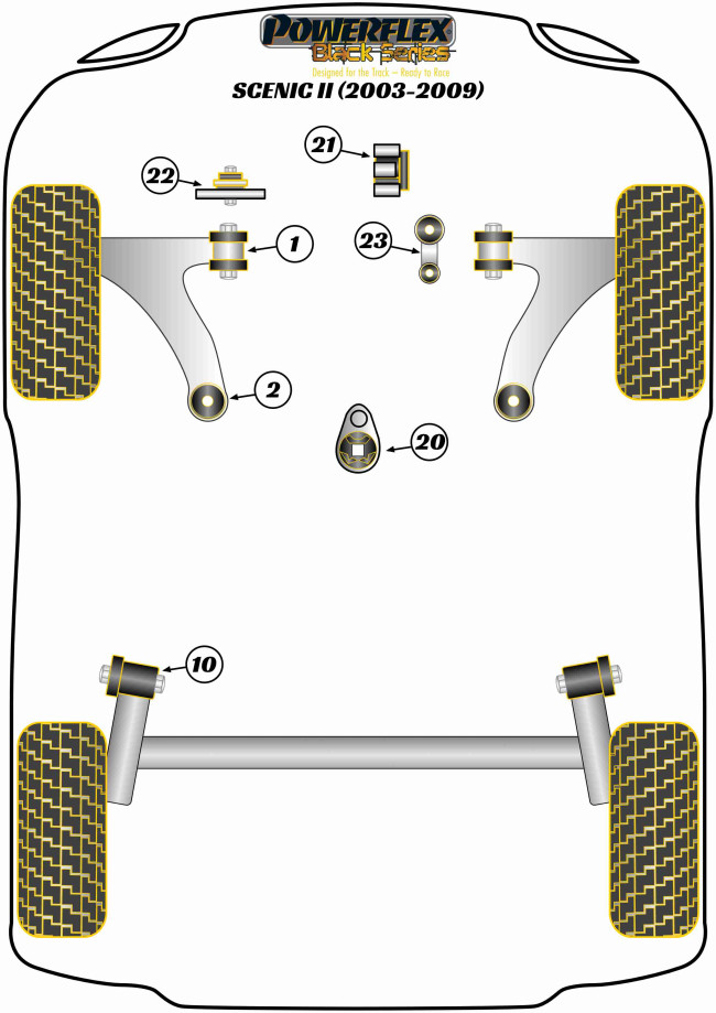 This insert fits into the voiding of the original mounting bush. Fits Clio III 1.5L diesel and 2.0L petrol engines including sport models. – Megane II, Scenic II and Grand Scenic II 1.9L diesel and 2.0L petrol engines.