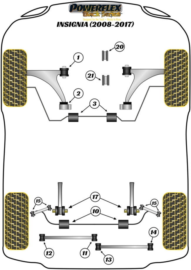 Powerflex Black -puslasarjat – Vauxhall / Opel Insignia 2wd (2008-2017)