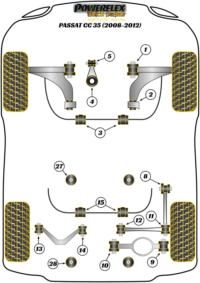 Made using our hardest Black 95A material, PFF85-704BLK fits vehicles from mid-2008 and is recommended for Competition use. For vehicles up to mid-2008 use PFF85-504BLK. Being a stiffer material additional NVH may be experienced when fitting this part.