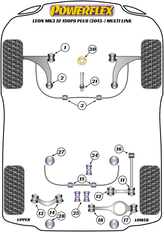 PFF85-831P replaces the lower half of the original bush whilst including an insert to fit into and fill the voids in the upper bush to minimise wheel hop and improve gear-shifting. This unique bush has been designed to be fitted without subframe removal and avoids associated wheel alignment costs. This part is made in our Purple Shore A 80 for vehicles running increased power or that see occasional track use.